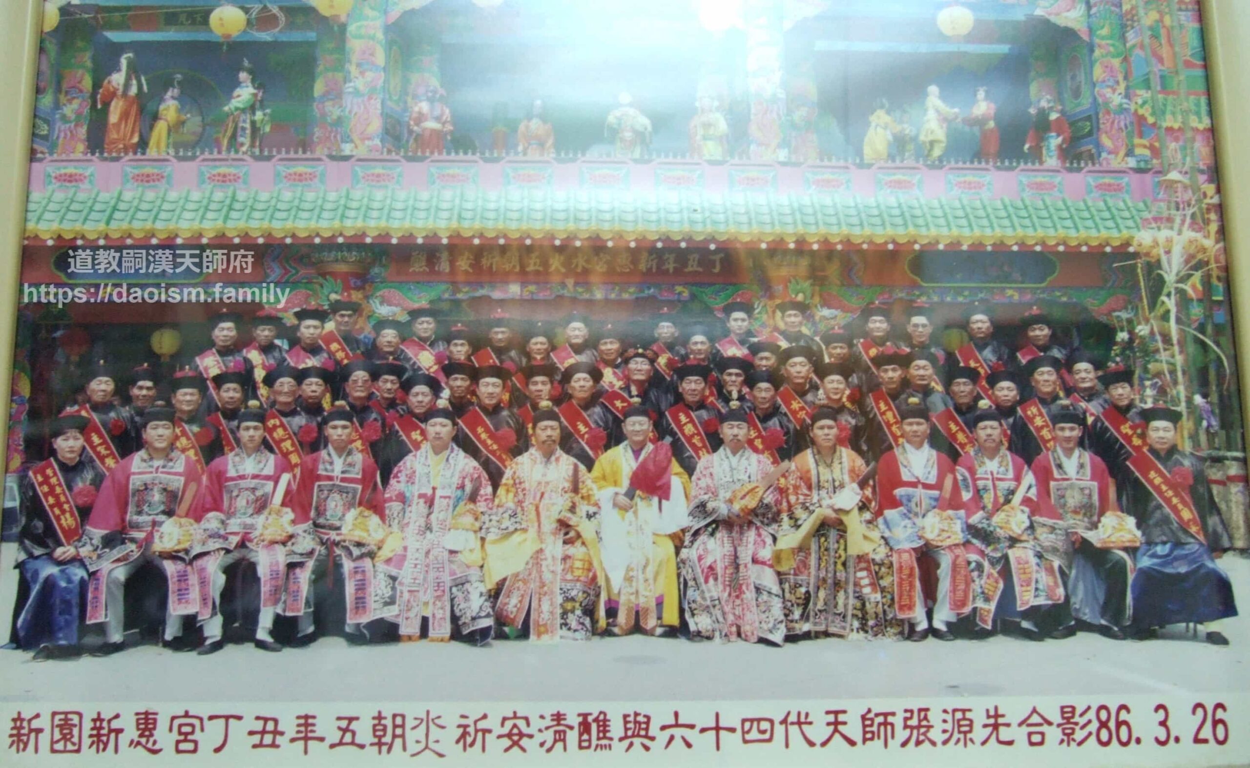 首頁 歷代系譜 六十四代天師 張源先 六十四代天師 張源先 六十四代天師諱源先,字宏基,民國二十年辛未(西元一九三一年)十二月二十九日生,祖父元昶為六十二代天師之兄弟,父克明,母汪氏,有兄姐六位,天師居四男也。性情質樸敦厚,處事端正,道德兼備。世居江西龍虎山,民國三十八年四月初,隨胡璉將軍麾下之三谿部隊,經福建、廣東來台。民國五十八年十二月二十五日六十三代天師仙逝,經在台家族會議通過,承繼教主衣缽,於五十九年九月二十八日假台南市天壇啟建天師襲職金籙醮典,民國六十年八月奉命以經理中尉退伍,正式就任中國道教嗣漢六十四代天師教主職位,以總領道教,宏揚教義,推展教務為職志。 民國六十三年著手編撰《歷代張天師傳》,由於部分文獻闕如,經過三年奔波尋覓終於將資料找齊,遂於民國六十六年二月十日編撰初版,參考中央研究院院藏史料與傅勤家所著之《中國道教史》(台灣商務印書館編印)等文獻,蒐集彙整第一代至第六十一代天師生平事蹟,補述六十二代至六十三代天師傳略,藉以弘揚歷代先祖彪炳勳業,永傳後世。在位期間,《歷代張天師傳》一書歷經二十版修訂新增,記錄了許多珍貴史料。六十五年,應聘前往台南麻豆代天府主持慶成祈安七朝清醮大典,十二年後(七十七年)及二十四年後(八十九年)再度受邀蒞臨主持戊辰科七朝慶成祈安清醮與庚辰年祈安七朝清醮。六十六年,應聘前往台南學甲慈濟宮主持丁巳科金籙五朝大醮,二十八年後(九十四年)再度受邀蒞臨主持祈安五朝清醮。六十七年,應華岡中華學術院院長張其昀博士之邀,參加宗教與道德第六次協進會,同年接受日本道教學會會長酒井忠夫專訪。六十八年四月,蒙 蔣總統經國先生召見於總統會客室。六十八年底,應聘前往美國夏威夷主持祈安清醮法會。七十六年,率數位弟子前往慈湖謁陵,先總統 蔣公示現靈光接見。八十一年,成立全國性及區級人民團體「中國嗣漢道教協會」,榮膺第一屆、第二屆理事長、第三屆名譽理事長、第四屆理事長,任內推展教務不遺餘力,九十六年,順利於草屯鎮中正路購置了一棟永久會館。八十五年,應甘肅省平涼市崆峒山道教協會之邀,率領三十六人參訪團前往,並至四川省成都青城山天師洞等道教聖地參訪。八十七年,前往馬來西亞檳城參訪。八十八年,率眾法師義務為草屯鎮九二一地震罹難者超度點主,並發動弟子募捐,將所募得之五十萬元分別捐給草屯鎮公所二十萬元、國姓鄉公所三十萬元,做為賑災之用。同年,於台中市東峰公園舉辦全國道教聯合祈天護國祐民齋醮法會,為九二一亡靈做七七四十九天「滿七超度」。八十九年,於草屯鎮中山公園設壇啟建「千禧祈福大法會」。九十年間,義務為草屯鎮中潭公路舉行路祭法事,為民祈求行車平安。九十三年,受邀蒞臨參與泰國暹羅代天宮三朝祈安清醮大典。九十四至九十六年,連續三年受邀蒞臨參與南鯤鯓平安鹽祭消災法會。 天師符法精練,筆力剛健,得者甚有徵驗。在位近四十年來參與主持國內外各地宮廟醮典,祈福禳災,造福黎民無數。奏授法籙,闡揚教化,受度者眾。 九十七年七月三十日,天師召開天師府弘道籌備召集人臨時會議,當眾宣布長女張懿鳳為天師府總監察,並指示由長女張懿鳳發起籌組中國正一道教總會。 九十七年十月十七日凌晨,天師夫人突聞鑼鼓管弦樂聲大作,此時長女懿鳳驚見一團白霧冉冉上升,天師功滿德就,得道飛昇上天。 國史館於民國九十八年十月印行初版《國史館現藏民國人物傳記史料彙編 第三十四輯》,將六十三代 張恩溥天師傳略與六十四代天師 張源先教主生平事蹟分別收錄在三五八頁與三六七頁。 長女懿鳳守孝三年,於民國一百年十月十五日在嗣漢天師府舉辦追思暨襲職大典正式繼任為六十五代天師。 « back to album醮典 麻豆代天府丙辰年慶成祈安七朝清醮大典民國六十五年學甲慈濟宮丁巳科金籙五朝大醮民國六十六年高雄關帝廟(武廟)慶成 羅天大醮民國六十九年新園五房村澄瀛宮庚申年三朝祈安清醮民國六十九年台南市南天府辛酉年五朝祈安清醮民國七十年雲林拱範宮甲子年三朝祈安清醮民國七十三年震世壇乙丑年三朝祈安清醮民國七十四年彰化員林至賢宮圓功慶成祈安三朝清醮大典民國七十六年台中大甲鎮瀾宮慶成祈安五朝清醮大典民國七十七年麻豆代天府戊辰年祈安七朝清醮大典民國七十八年笨港口港口宮辛未年五朝祈安圓醮大典民國八十年財團法人高雄市明聖宮白龍庵辛未科慶成水火五朝祈安清醮民國八十年錦湖吳保宮癸酉科慶成祈安五朝清醮大典民國八十三年大社(后店、東勢、西興)北極殿丙子科五朝祈安清醮大典民國八十五年崇聖殿丙子科慶成暨五朝祈安清醮大典民國八十五年新園新惠宮丁丑年五朝水火祈安清醮大典民國八十六年下潭雲龍宮五朝謝恩祈安清醮大典民國八十六年麻豆代天府庚辰年祈安七朝清醮大典民國八十九年三重義天宮慶成五朝祈安清醮大典民國八十九年高雄市東隆宮歲次辛已年五朝祈安王醮大典民國九十年花蓮代天府癸未年祈安五朝王船醮民國九十二年台中市元保宮凌霄寶殿慶成安龍謝土大典民國九十三年泰國暹羅代天宮三朝祈安清醮民國九十三年台南學甲慈濟宮乙酉科護國慶成祈安五朝清醮大典民國九十四年 ← 六十三代天師 張恩溥 六十五代天師 張懿鳳 →